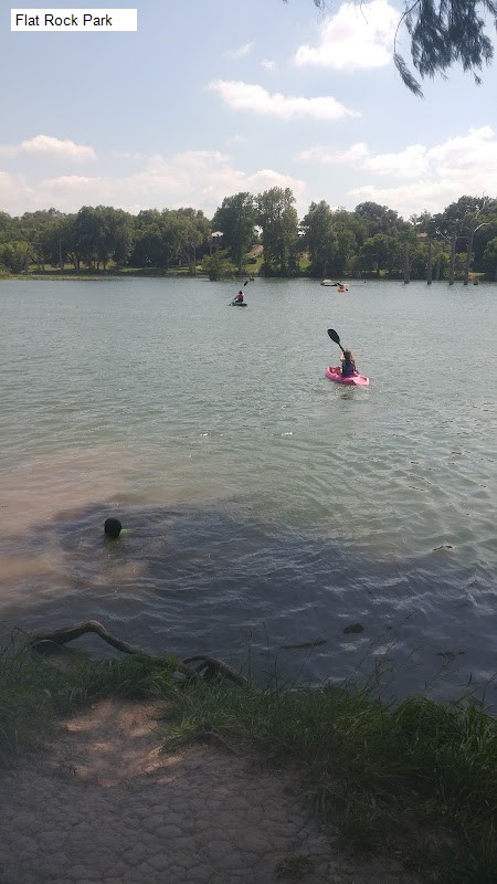 Trees roots can be seen growing into the river, theres even a rope being and a tire swing hung on 1 of the trees! There are 2-3 cement picnic tables on the slope, a separate area for a childrens playground with slide and swings. Fur-baby dogs are welcome here, on leash, of course!